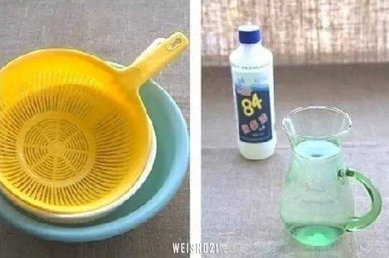 ▌將84消毒液和清水,以1:200的比例兌在一起,將需要“換膚”的塑料制品放入,浸泡兩個(gè)小時(shí)。再用清水反復(fù)沖洗干凈就可以了,效果好又不會產(chǎn)生任何腐蝕作用,浸泡過塑料框的水還可以倒入馬桶中,還能起到清潔馬桶的作用。