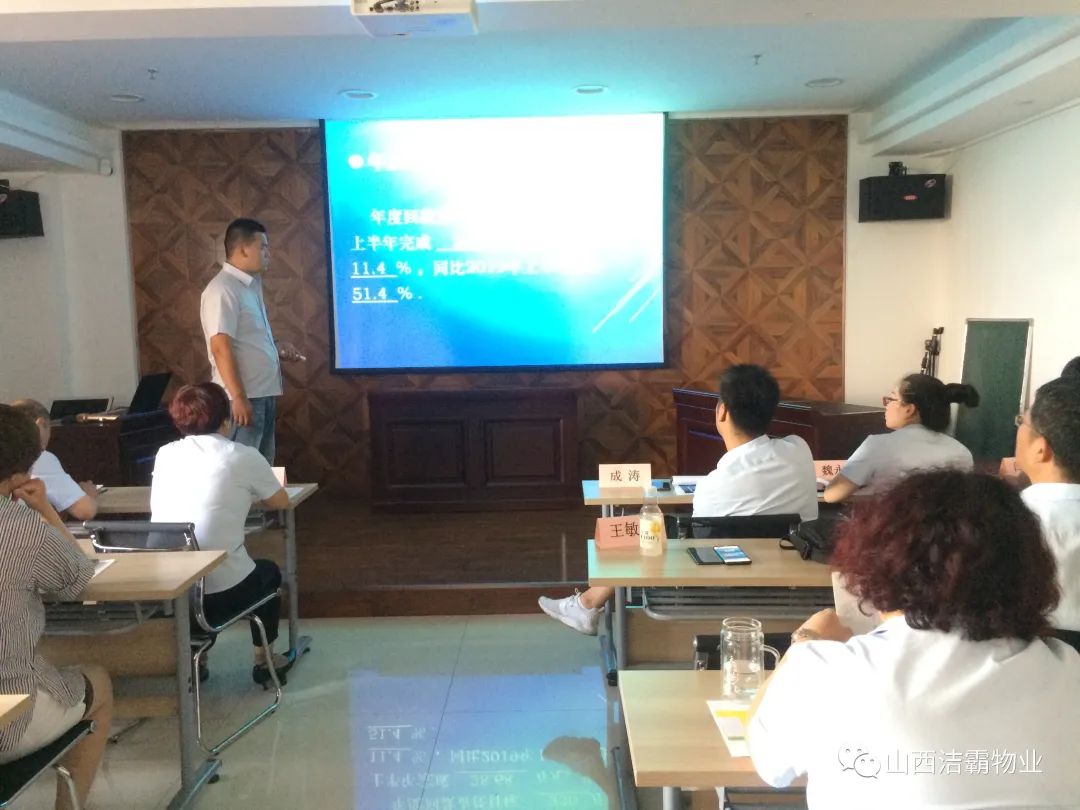 會上,公司保潔部經(jīng)理魏永梅、工程部經(jīng)理張翠林、山西百潔物業(yè)服務(wù)有限公司經(jīng)理閆秋麗、山西潔霸物業(yè)管理有限公司經(jīng)理李廣忠、晉城市合眾力勞務(wù)派遣有限公司經(jīng)理成濤、富士康項目部經(jīng)理王敏杰等分別就2020年上半年的經(jīng)營指標(biāo)完成情況作了詳細(xì)的匯報,并對比目標(biāo)找出了差距和根本原因,提出了下半年的經(jīng)營目標(biāo)及保障年度目標(biāo)實現(xiàn)的措施。