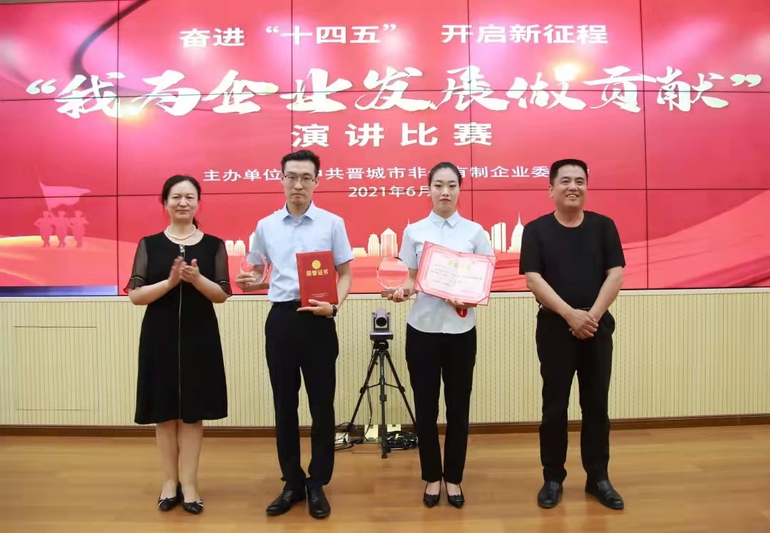 6月2日下午,晉城市非公企業(yè)黨委“奮進十四五·開啟新征程 我為企業(yè)發(fā)展做貢獻”主題演講比賽決賽在市市場監(jiān)督管理局6樓視頻會議室成功舉行。我公司選手薛李琴在決賽中榮獲二等獎。