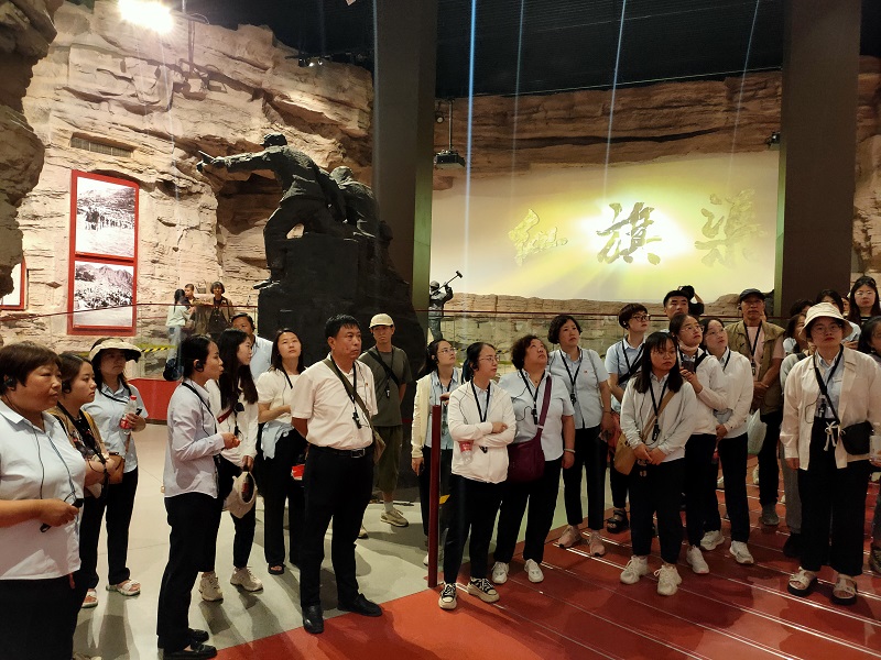 走進(jìn)紅旗渠紀(jì)念館,大家跟隨講解員的腳步,在千年旱魔,世代抗?fàn)帲患t旗引領(lǐng),創(chuàng)造奇跡;英雄人民,太行豐碑;山河巨變,實(shí)現(xiàn)夢(mèng)想;繼往開來,精神永恒五個(gè)部分逐一駐足學(xué)習(xí),通過一件件珍貴的物品,一幅幅生動(dòng)的圖片、一幀幀震撼的畫面、一個(gè)個(gè)感人的故事,讓大家身臨其境感受到林州人民建造人工天河時(shí)不畏艱險(xiǎn),頑強(qiáng)拼搏,緊靠一錘一鏟削平1250座山頭、鑿?fù)?11個(gè)隧道、架設(shè)151個(gè)渡槽的恢弘場(chǎng)景。在場(chǎng)的各位都深深地被“自力更生、艱苦創(chuàng)業(yè)、團(tuán)結(jié)協(xié)作、無私奉獻(xiàn)”的紅旗渠精神所感動(dòng),切實(shí)感受到中華民族勤勞堅(jiān)韌的優(yōu)良傳統(tǒng),領(lǐng)悟社會(huì)主義是干出來的,新時(shí)代是奮斗出來的。