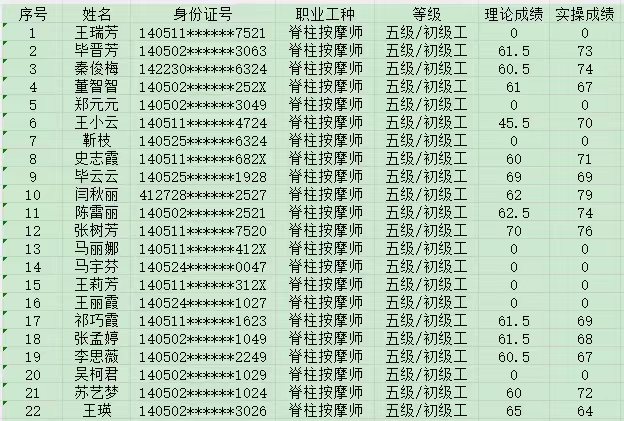 晉城市潔霸清潔服務股份有限公司職業(yè)技能等級認定中心現(xiàn)將2024年10月13日認定人員成績公示如下: